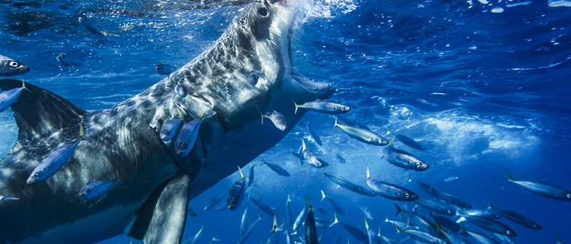 Com bocas de até um metro de largura e mais de 350 fileiras de dentes, o tubarão-baleia se alimenta filtrando a água e sua comida. Isso basicamente significa que eles nadam com a boca aberta o tempo todo, pressionando nutrientes em suspensão e plâncton sobre uma estrutura de filtragem especializada.
